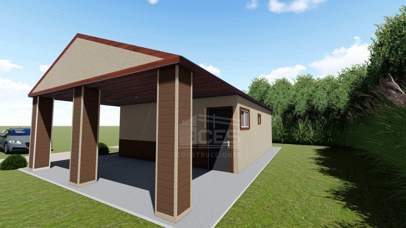 El techo posee terminación de chapas trapezoidales que dependiendo de la tipología pueden ser sincadas o de color (negro, rojo, verde o azul).